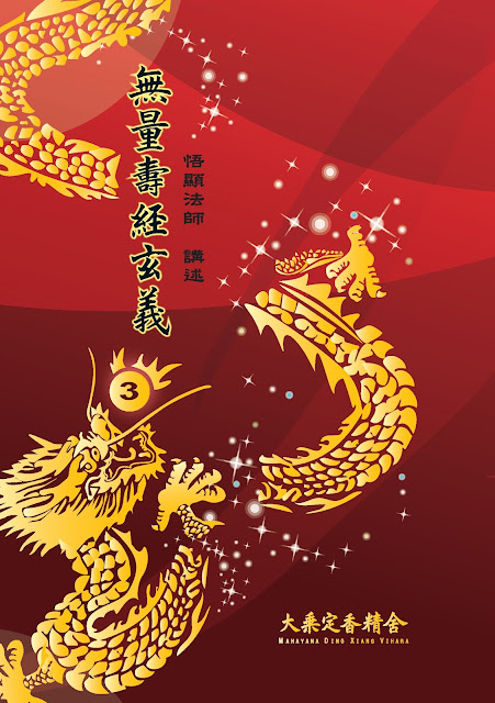 今天要講的是無量壽這三個字,無量壽梵語就是阿彌陀,阿彌陀三字是密語,含攝著無量義,阿翻做無,彌陀翻做量,在無量的義趣裡面,我們取壽命跟智慧來做解釋,一個人有壽命,沒有智慧,那是長久的愚癡;有智慧,沒有壽命,那也沒有辦法真正的利益眾生,所以在一切的無量當中,我們取無量光跟無量壽,實際上阿彌陀這三個字,就是講我們的真如本性,講的我們的真心本性,真心本性就是無量,這無量不屬於有限量,不是對待的,它不是對於有量來說的無量,它是真真實實的無量,這是不可說、不可量,你用心意識沒有辦法說,用心意識來測度,沒有辦法度量,所以心性是真正的無量,能夠現十法界,就像《華嚴經》講的或現童男童女形,天龍及以阿修羅,如是一切皆能現,海印三昧神通力,這是在《華嚴賢首品》裡面講到的,說明心性能夠出生一切萬法,所以今天念佛為什麼能夠快速的消除煩惱,因為念佛就是直念本性的無量壽、無量光,眾生迷惑在六塵境界當中,所以壽命是有量的,而且非常地短暫;你要是契入心性,那就是無量,所以這裡講的是取,今翻無量壽是取其中主要的一個義趣。大家都知道沒有人不病、沒有人不死的,雖然是這樣,還是一直希望健康、長生不老,其實這一念心就是執著,要是把這一念心捨掉,那你生死就了了,這一念心就是無明,因為你把這個生滅認為真常,還希望它能不斷的下去。就像佛為什麼要教大家出離,不教大家結婚生小孩,現在有一些出家人,搞什麼佛教婚禮,這跟釋迦牟尼佛所說的完全相違背。搞佛教婚禮,說好聽是開緣,實際上在出家人的戒律裡面,他是犯了大戒,那是十三僧殘罪之一,犯了嚴重的過失,所以眾生就是念念執著這個生滅,以為是真常,以為是真的,希望它能夠相續,能夠長久延續生命,夫妻要長長久久,這都違背了真心本性的無量壽,釋迦牟尼佛是看到了事實真相,為我們講出來,富貴必然貧賤,強健必定當死,有合會就有別離,有生就有老死,所以他不在這個生滅上去尋求,生滅的境界只會讓我們更加煩惱而已,情、愛沒有辦法出離煩惱,本來是無量壽,本來是無量光,因為一念貪著,一念執取,就變成有限的生命,所以佛講眾生是作繭自縛,被自己心所現的境界給迷惑了,這世間沒有男女相,既然沒有男女相,那何來的執著?男女相怎麼來的?是你一念妄想造成的,這一念妄想要是拿掉了,看清楚,只是四大假合而已,所謂假借四大以為身,心本無生因境有,你的心本來是無生,本來是無量光、無量壽,因為一念攀緣,妄現有境界,所以佛告訴我們:「心本無生因境有,前境若無心亦無,罪福如幻起亦滅。」你的妄心要是空,輪迴的這個業自然就沒有,輪迴就是罪。心若空時輪迴相自然沒有,男女相就打破了,那怎麼空呢?要藉由經教的熏習,常常聽,常常想,自然就轉得過來,所以這個世間一切的罪福─善業、惡業、染業、淨業都如幻如化。當處出生隨處滅盡,罪福如幻起亦滅,自然就滅除了,就是我們體會不到這本性的無量壽,所以才有生死輪迴。一念無明妄生,變現出山河大地,這山河大地當中又摶取少分四大,就抓著少分的四大,認為這個是我的身,我來依止,對我之外的有人相,人相裡面再分男女,就是這樣來的。然後起貪瞋癡,順我者則愛,逆我者則憎,所以才有世界、眾生、業果這三種相續,眾生相續,業果相續,在境界裡面不斷的起惑造業,造善業,造惡業,所以你迷失了無量光壽,今天釋迦牟尼佛,直接把如來的頂法授予我們,這是諸佛所行的境界。無量壽就是我們本來的面目,就是我們眾生原有的壽命,壽命是無量的,沒有生死。我們認為有生死,那是一念錯認,確實沒有生死,因為一個妄想所以造成生死,而這個妄想你還念念在意,念念執著,念念的不捨,那就生死不覺。就像大海,本來是平靜無波,一個無明風一吹,剛開始是小波浪,一波推一波,越推越大,最後巨浪滔天,佛門講的業浪滔天,就是這一念無明妄想,把你的真如本性都淹沒掉了。所以你本來是無量壽,變成現在人壽只有七十歲,有些畜生的壽命只有我們人壽的一天或半天,我們的半天是牠的一生,四王天的一天是人間的五十年,忉利天的一天是人間一百年,所以你的心越空、欲望越少,壽命越長,這是真正證得本性的無量壽。所以我們現在直接念阿彌陀佛,就是念我們的本心,這比其他的修學法門都還要直截穩當,不會走錯路。其他的方式要靠自力,淨宗是自他二力並用,所以佛號能夠老實念,你就能夠出輪迴,念佛的心就是佛。